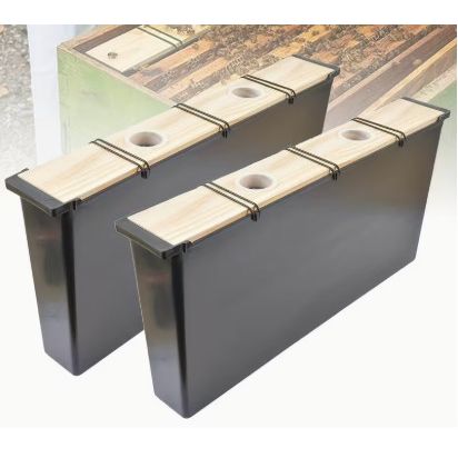 Krmítko je tvořené plastovou kapsou, dřevěnou horní deskou se dvěma otvory. Těmi se krmí včely přes kónická síta dosahující ke dnu. Minimální riziko utonutí včel.